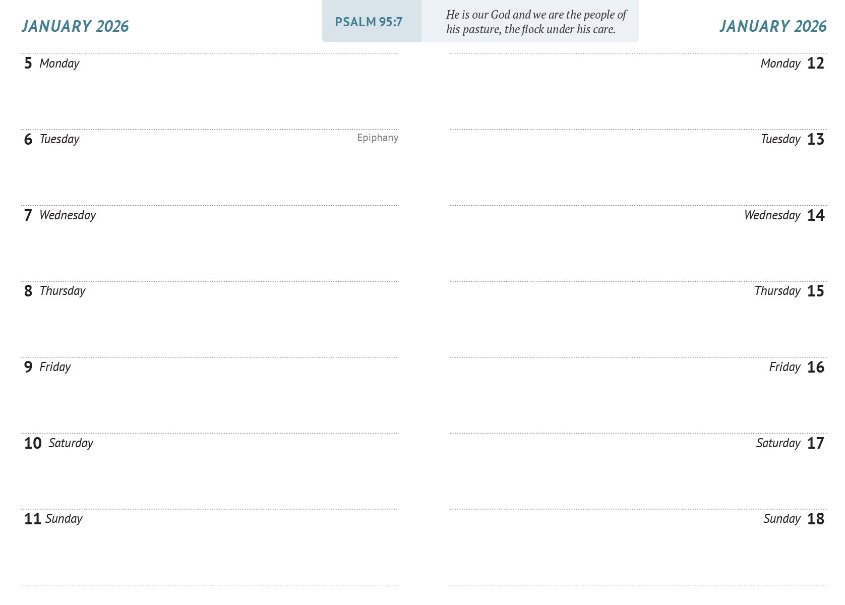 The Our Daily Bread 2025 Pocket Diary, is a compact A6 companion for on-the-go organisation. With a two-week spread per page, inspiring Bible verses, and space for notes and prayers, it keeps you organised and uplifted. Important dates are highlighted monthly. Perfect to keep you on track wherever you are.